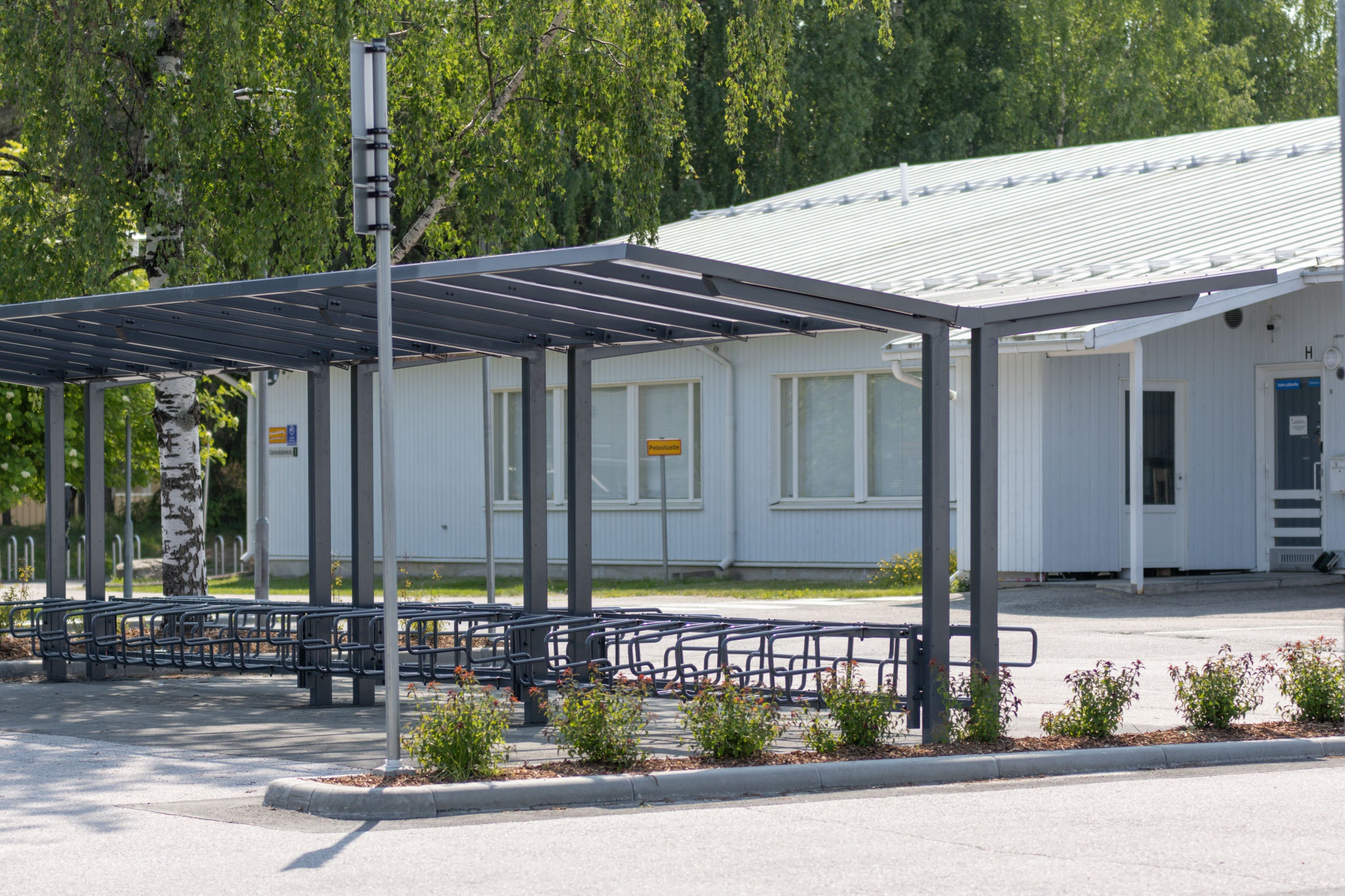 ViVas cykelskydd är utformade för att klara Finlands krävande väderförhållanden. De dubbelsidiga cykelskydden på Leinola skola ger plats för ett stort antal cyklar och skyddar dem från regn och snö. ViVas cykelskydd är lätt men ändå hållbart i sin design, och dess modulära struktur möjliggör lösningar som är skräddarsydda för olika utrymmens behov. Skyddet är utformat för att göra det enkelt för alla cyklister att använda cykelställ.