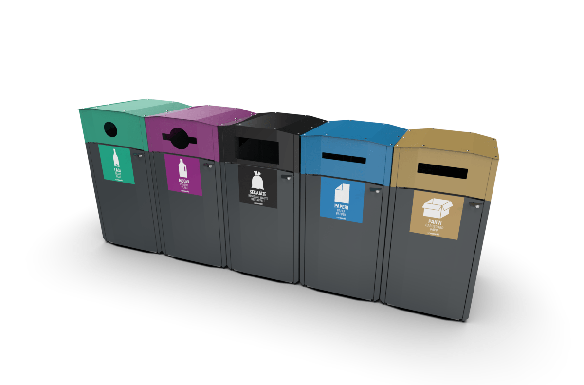 - Tillbehör inkluderar etiketter och en fyllnadsnivåsensor som kan anslutas till molntjänsten Finbin Connect.