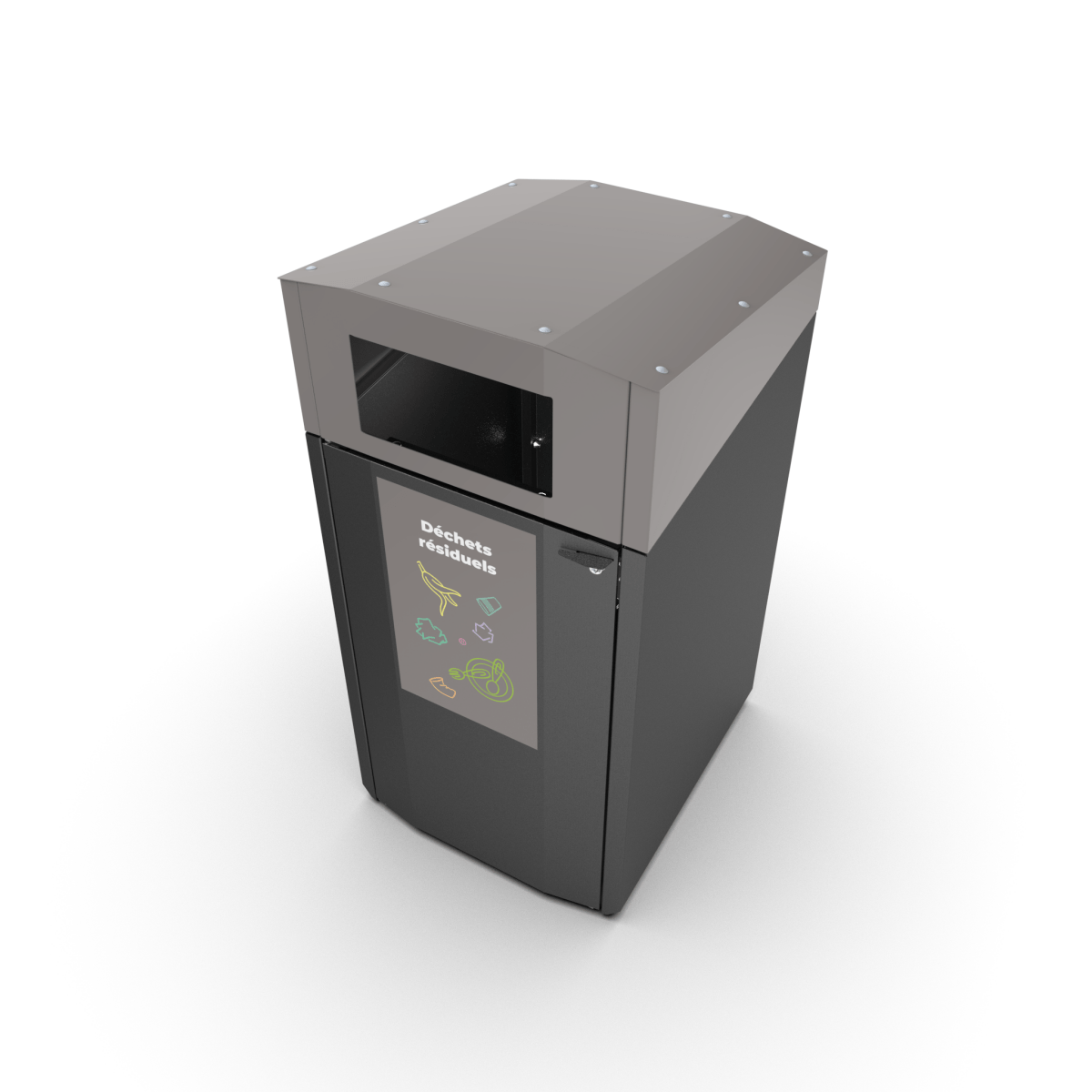EkoCity Flow 240 kan användas individuellt eller som en del av en större sorteringspunkt. Kärlen kan placeras sida vid sida eller rygg mot rygg, vilket möjliggör en tydlig och systematisk återvinning. Det är möjligt att välja egna färger på huvuddelen av kärlet och inkastöppningarna för branding och sorteringsvägledning. Standardsorteringsetiketter finns också tillgängliga för behållaren.