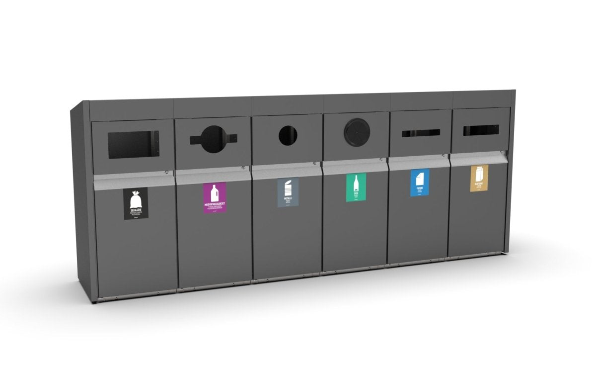 Den innovativa Loop tar sopsortering till utomhusmiljöer. Den modulära sorteringsstationen kan modifieras för att passa dina behov och erbjuder möjligheten att samla in upp till sex avfallstyper samtidigt. Loops färgglada frontpaneler och tidlösa design säkerställer att det är en lättanvänd och hållbar sorteringslösning för stadsmiljöer.